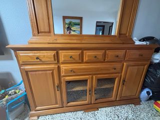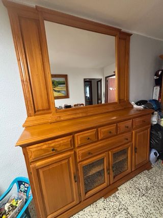 Mueble de salón de madera con espejo. - Amplio espacio de almacenamiento. - Diseño clásico y elegante. Si se compra el conjunto completo subido a mi perfil rebajo el precio. QUIEN LO COMPRE SE HACE CARGO DE RECOGERLO Y BAJARLO DEL PISO