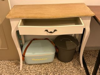 Elegante consola de estilo clásico, perfecta para dar un toque especial a tu hogar. - Diseño con un cajón. - Patas curvas y ornamentadas. - Acabado en madera y metal.