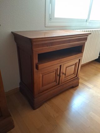 Bonito mueble auxiliar de madera, ideal para colocar una televisión. Tiene dos puertas con tiradores. - Perfecto estado. - Diseño clásico y elegante. - Acabado en madera oscura. Puede sobresalir aparador