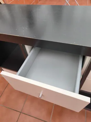 Se vende mueble organizador con compartimentos. - Estructura exterior en color negro. - Paneles interiores y cajones en color blanco. Importante: Los desperfectos aparecen en las fotos.