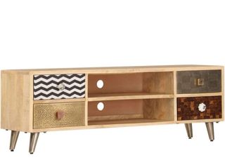 Mueble auxiliar con un diseño único y funcional. Mueble para TV/Aparador/Armario Auxiliar con 2 Compartimentos y 4 Cajónes, Madera Maciza de Mango, 120x30x40 cm - Combina madera y detalles de texturas. - Presenta varios compartimentos para almacenamiento. - Tiradores de diferentes estilos.
