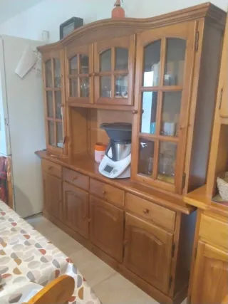 Mueble de comedor de madera maciza en muy buen estado. Amplio y funcional, ideal para organizar tu salón. - Diseño robusto y elegante. - Acabado natural de la madera. Recogida en Tarragona