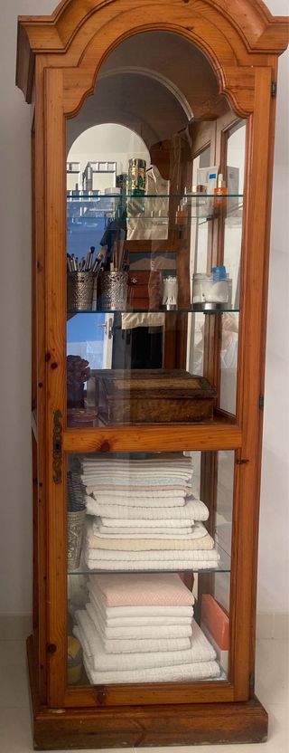 VITRINA MADERA MACIZA CON LEJAS DE CRISTAL Y MADERA. ALMACENAJE VAJILLA, CRISTALERIA, ROPA BLANCA...