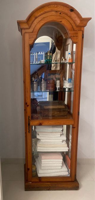 Vendo preciosa y espectacular vitrina de madera de pino macizo, ideal para lucir tus piezas de colección, vajilla ... Tiene mucha capacidad Se encuentra en muy buen estado,puede tener algún ligero roce. - Medidas aproximadas: 203cm x 146cm x 43cm - Dos puertas con cristal. - Diseño clásico con detalles tallados. Medidas 2,03x1,46x 43 Oportunidad 220€