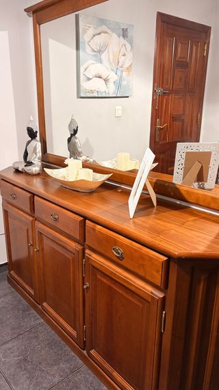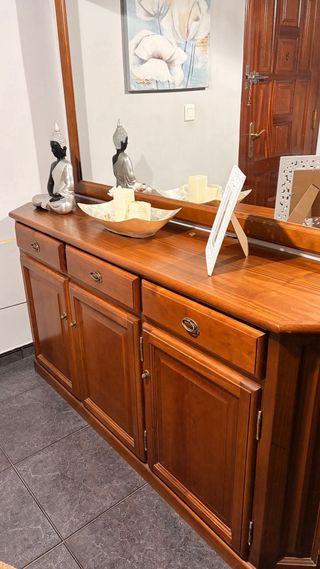 Mueble de madera maciza con un espejo integrado. Ideal para recibidor o comedor. - Acabado en madera natural. - Diseño clásico y elegante. - Amplio espejo. Opción de venta por separado Precio negociable y opción de transporte dependiendo del lugar