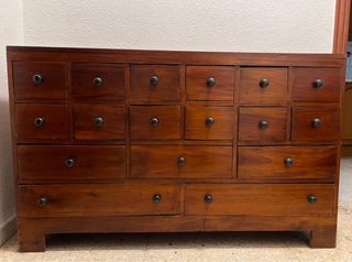 Bonito aparador de madera maciza. Es una pieza robusta y elegante, ideal para cualquier estancia. - Dispone de 17 cajones de distintos tamaños. - Perfecto estado de conservación. - Diseño clásico y atemporal.
