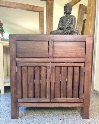 Somos taller artesanal y hacemos Muebles de baño, aparadores, mesas, islas de cocina, consolas de TV a medida, Mobiliario interior en madera natural tratada de gran calidad. Realizamos sobre pedido, todas las medidas en madera de pino natural. Perfectos acabados en diferentes texturas, colores, aceites y barnices, estructura en madera maciza. Mueble de Baño Colonial Super liso con 2 cajones superiores y puertas de rejillas grosor 4 cm Medidas 60/90x50x80 Precio 625€+IVA+Transp. No Incluido. Más información y productos: WhatsApp 605576471 Instagram @saito_designs emails: info@saitodesigns.com SOLICITA PRESUPUESTO DE TU MUEBLE