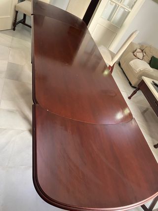 Se vende todo el conjunto de muebles de salón de madera maciza fabricado en Valverde del Camino, formado una por mesa extensible ( con algún arañazo) 6 sillas, aparador, vitrina y mesa auxiliar baja, de regalo la mesa de tv. Precio negociable Medidas: mesa comedor: 178 x 88 x 79( altura) . Largo en extensión 282 Sillas: Anchura :52x 45 x 104 Aparador: 224x 48x 96 Vitrina: 226x 103x 45 Mueble tv de regalo 80 x 45 x 82 Mesa baja 121x 80x 52