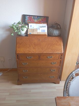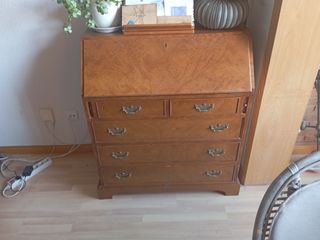 Mueble secreter con un diseño clásico y elegante. - Fabricado en madera maciza. - Acabado en tono marrón cálido. - Cuenta con varios cajones para almacenamiento.