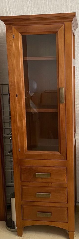 Mueble de madera con puerta de cristal para exhibir tus piezas practicamente nuevo. - Diseño clásico y elegante. - Ideal para colecciones de porcelana o vajilla. - Acabado en tono madera natural.