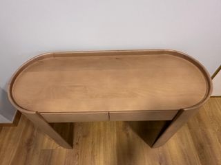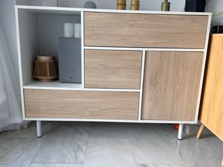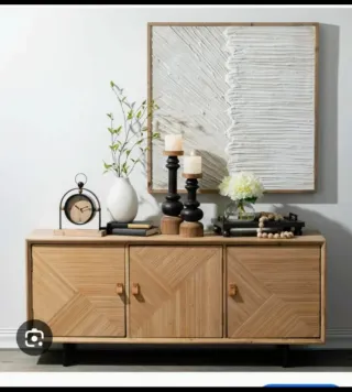 Vendo elegante aparador de madera con diseño curvo y acabado natural, comprado en mayo de 2025, con menos de un año de uso. Está en excelente estado, muy bien cuidado. - Forma ovalada. - Dos cajones integrados. - Patas curvas y estilizadas - Ideal como aparador, consola de entrada o tocador - Estructura sólida y estable Perfecto para salón, recibidor o dormitorio. Recogida en mano. Para más información o fotos, escríbeme sin compromiso.