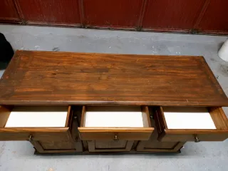 Mueble aparador de madera maciza robusto y de calidad. Amplio espacio almacenamiento . Dispone de 2 puertas laterales y 5 cajones centrales amplios Buen estado general. Marcas normales por El uso - Diseño elegante y funcional. - Amplio espacio de almacenamiento. - Acabado en tono madera natural.