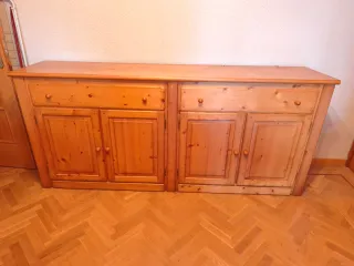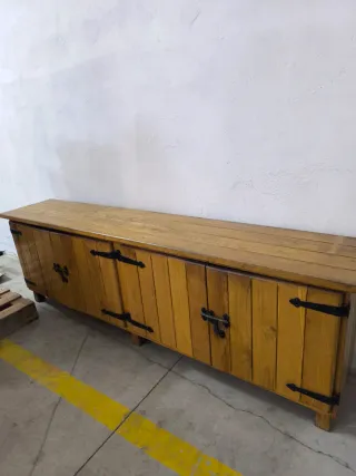 Mueble aparador de madera maciza de pino, con puertas y cajones. - Amplio espacio de almacenamiento. - Diseño rústico y robusto. - Acabado natural de la madera. Tiene ese precio porque esta en una bodega y el comprador se debe hacer cargo de su recogida