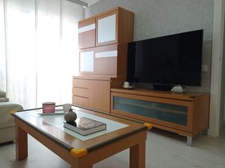 Vendo conjunto de muebles de salón en perfecto estado. Diseño moderno, minimalista y muy funcional, combinando blanco mate con detalles en madera natural. Ideal para dar un toque cálido y actual a tu casa. El conjunto incluye: Mueble de TV bajo: Con dos amplios cajones laterales y dos estantes centrales para dispositivos (consola, deco, etc.). Patas de madera inclinadas estilo retro. Aparador/Vitrina Alta: Gran capacidad de almacenaje. Cuenta con un estante visto decorativo ideal para libros o plantas y puertas cerradas para guardar vajilla o lo que necesites.