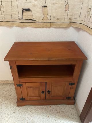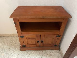 Mueble aparador con un diseño rústico y acabados en madera. - Diseño de dos puertas y dos estantes. - Patas cónicas de madera. - Perfecto para colocar televisión El mueble está en Madrid, en el barrio se Chamartín
