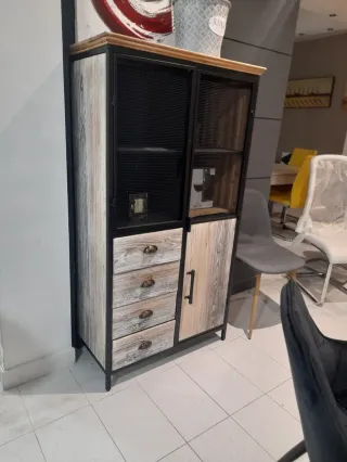 Super oferta¡¡ vitrina industrial 3 puertas 4 cajones 270€ + porte y montaje € consultar Cel: 641755310 preguntar por DANNA Tenemos financiación: 2, 3 o 4 cuotas Hacemos envíos contrareembolso a Barcelona y Alicante Preciosa vitrina de estilo industrial, perfecta para darle un toque único a tu hogar. Se encuentra en muy buen estado. - Diseño combinado de madera y metal. - Dos puertas con rejilla metálica. - Cuatro cajones con tiradores de estilo rústico. - Ideal para almacenar y exhibir objetos.