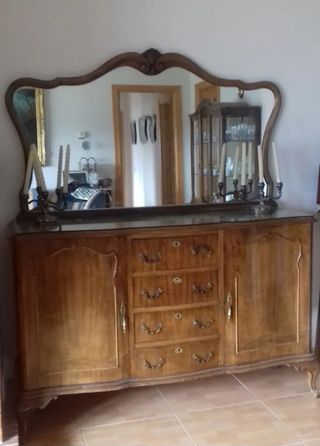 Aparador antiguo de madera maciza con espejo