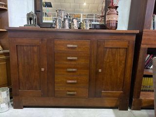 Precioso mueble de madera maciza, muy cuidado y de gran calidad. Cuenta con dos vitrinas laterales con cristal y seis cajones centrales, perfectos para almacenamiento. Ideal para salón, comedor o despacho. Alto 111 Ancho 127 Fondo 42 🔸 Madera maciza 🔸 Gran capacidad 🔸 Cristales originales 🔸 Acabado clásico y elegante 🔸 Muy robusto y estable Perfecto para darle un toque cálido y distinguido a cualquier espacio. PRECIO NEGOCIABLE. Se puede ver sin compromiso.