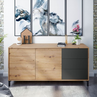 Aparador 2 Puertas 3 Cajones. Roble Nodi/Gris Ant