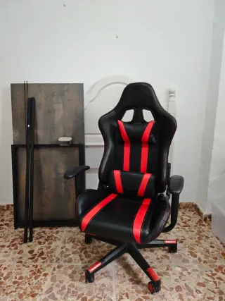 Silla de gaming con un diseño deportivo y ergonómico. - Tapicería en piel sintética. - Detalles en color azul. - Estructura de plástico resistente.