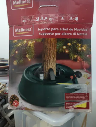 Soporte para árbol de Navidad de la marca Melinera. Diseñado para adaptarse a diferentes troncos. - Mecanismo de cierre automático. - Medidas aproximadas: 37 cm (sin garras ni pedal). - Ideal para troncos de árbol de Navidad.
