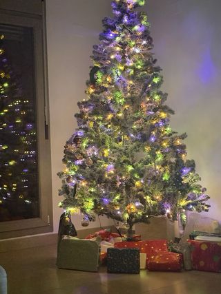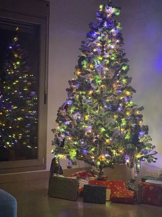Árbol de Navidad artificial con luces LED integradas. Listo para decorar tu hogar y crear un ambiente festivo. Tiene defectos por el uso, pero las luces funcionan perfectamente, no es una árbol muy voluminoso pero cumple su función. No tengo ninguna foto montada porque no pensaba venderlo, pero al final hemos decidido cambiarlo por uno más grande. Las medidas de ancho y fondo son orientativas, el alto si que es real. - Luces LED de bajo consumo. - Ramas frondosas para un aspecto natural.