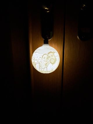 Adorno de Navidad transparente con un diseño único. Perfecto para colgar en el árbol. - Diseño con fotografía impresa. - Luz led incorporado
