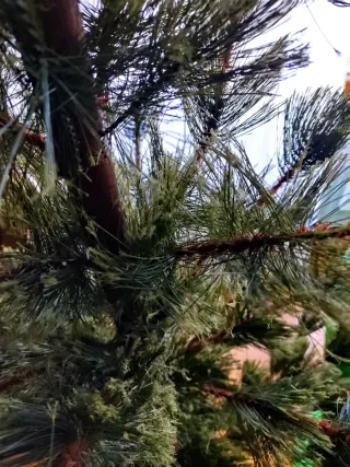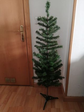 Arbol sintético. Comprado hace 8 años en Muy Mucho. Es alto (180) y estrecho. Ocupa muy poco. Y se monta y desmonta facilimo. Lo vendo porque quiero comprar uno mayor. Mide 180 de alto y 60 aprox de ancho.