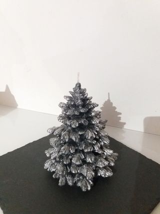 Vela de Navidad de Zara home. Arbol azul grisáceo con plateado y purpurina. Nunca se usó aunque tiene un par de puntas aplastadas (se muestra ese lado en las fotos). Medidas aprox 16 de alto, base de 9 cm. No ofertas ni intercambios