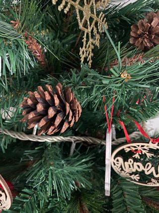 Árbol de Navidad con adornos de piñas. Mide 1.8 cm