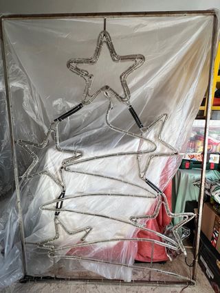 silueta luces LED de forma árbol con estrellas! color blanco y verde. medida de alto 2,01x1,40 de largo. está en perfecto estado tal como en la foto luce preciosidad! no acepta envios debido por el tamaño superado. solamente tiene que venir a recoger en cantabria. visita en mi perfil tengo más cosas de navidad cualquier duda pregúntame!