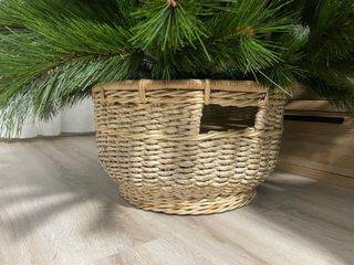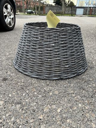 Base decorativa para árbol de Navidad - Medidas: 57 cm de diámetro y 28 cm de altura. - Material: Madera de yute - Color: Gris