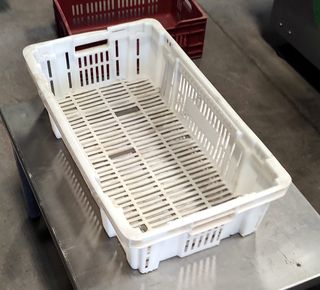 Cajas de plástico para fruta, verdura, etc. 10 unidades disponibles. Dimensiones: largo 700 mm, ancho 380 mm, alto 185 mm. CONSULTAR PRECIO.