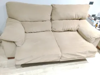 Conjunto de sofás de dos y tres plazas en color beige. Los asientos son deslizables y se sacan para mayor comodidad y poder acostarse. Medidas 3 plazas: 200 x 90 x 90 Medidas 2 plazas: 160 x 90 x 90 Ideales para una casa de campo - Tapicería de tela. - Diseño moderno y confortable.