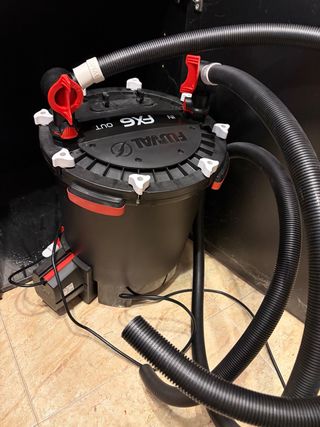 Filtro canister de alto rendimiento para acuarios de hasta 1500 litros. Cuenta con sistema de cambio de agua fácil y diseño de cesta. Prácticamente nuevo. - Capacidad para 400 galones / 1500 litros. - Caudal de 925 GPH / 3500 LPH. - Diseño de bandeja de medios en cesta. - Bajo mantenimiento. - Incluye mangueras y accesorios