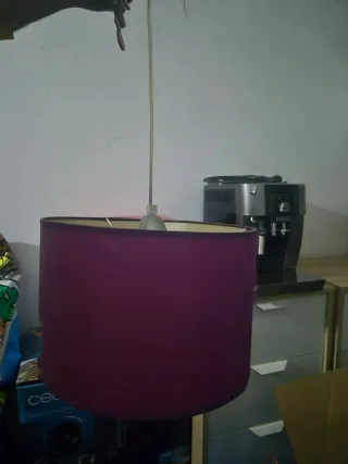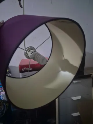 Lámpara con un diseño elegante y moderno, perfecta para dar un toque de estilo a cualquier habitación. - Pantalla de tela en color morado por fuera y beige por dentro. - Estructura interior de metal.