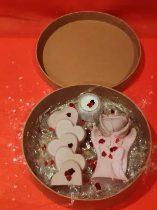 Set de velas artesanales con un diseño único. -Cera de soja natural. -Perfecto regalo para SAN VALENTÍN ♥️ ♥️ - Incluye varias velas con forma de corazón. - Una vela con forma de figura de pareja. - Pequeño recipiente con crema brillante de coco 🥥.