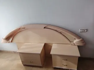 Conjunto de dormitorio con cabecero, cómoda y dos mesitas de noche. - Cabecero con diseño curvo y detalles. - Cómoda con cajones. - Dos mesitas de noche a juego con cajones.