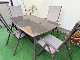 Conjunto mesa y sillas jardín cristal