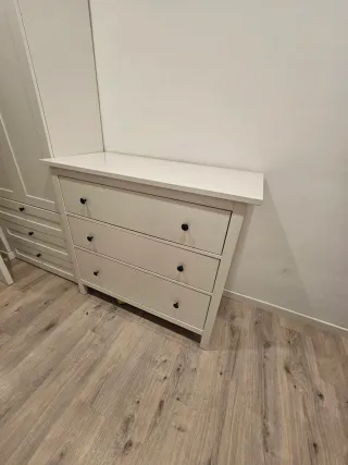 Cómoda de gran tamaño con un diseño moderno y limpio. Sus cajones ofrecen amplio espacio de almacenamiento. - Acabado en color blanco. - Tiradores negros. - Estructura de madera.