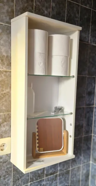 Estantería o armario de baño con un diseño moderno y funcional. Ideal para organizar tus artículos de aseo. 30 ancho 13,5 fondo 67 alto