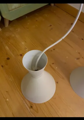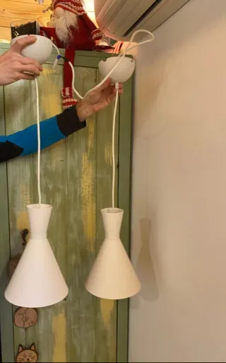 Dos lámparas colgantes de diseño moderno. Se pueden colocar por separado o juntas (conexion ya realizada para que funcionen juntas) - Color blanco. - De metal Una unidad por 30€