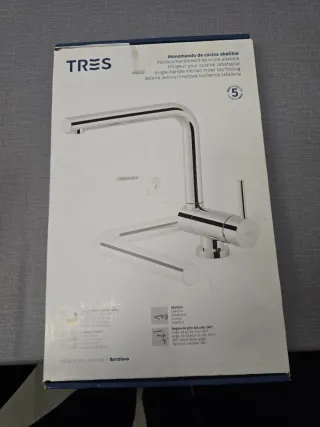 Grifo de cocina abatible de la marca TRES, diseñado para optimizar el espacio. - Modelo monomando. - Diseño plegable. - Acabado plateado. - Fabricado en metal. - Diseño producido en Barcelona. Ref 1730336010E Nuevo a estrenar.