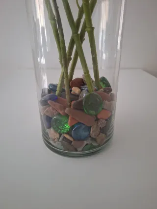 Hortensias de plástico con piedrecitas