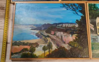 Conjunto de seis cuadros con paisajes de Arenys de Mar. Ideales para decorar cualquier espacio, o regalar como suvenir. - Pintura acrílicas sobre tela y madera - Marcos de madera. Diferentes tamaños. Todo el set se vende por 80€ los cuadros individuales por 20€ Consultar.