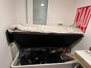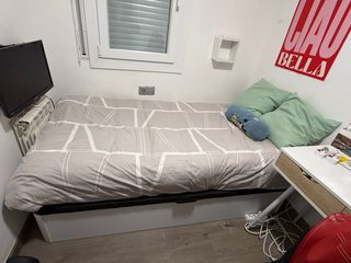 Se vende conjunto de cama con colchón (NO envío y hay que desmontar la estructura) - Medidas: 135x190 cm. - Estructura de madera. Con somier de láminas (85 cm de alto el cabezal y 37cm de alto la estructura donde se encaja el colchón - Colchón muelle ensacado BEDLAND (RS5) Altura colchón 27 cm