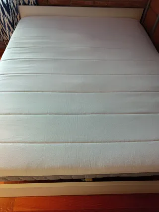 Colchón de matrimonio Ikea Vesteroy. - Medidas: 200x160 cm. - Color: Blanco y gris. Se ha usado literalmente una noche. No me convence, simplemente. Está nuevo y no quiero hacer el trayecto para devolverlo.
