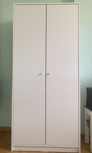 Armario de dos puertas de Ikea en buen estado. Un mueble práctico y elegante para tu hogar. Medidas: Alto 132 cm, Ancho 75 cm y 40 cm profundidad - Diseño clásico con tiradores redondos. - Patas torneadas que le dan un toque de estilo. - Amplio espacio interior para organizar tus pertenencias.