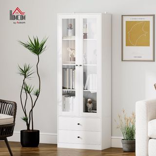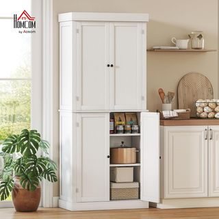 Descubre el mueble despensa HOMCOM, un complemento moderno y minimalista para cualquier ambiente. Fabricado en MDF, es fácil de limpiar y resistente. Dimensiones: 59L x 31P x 155A cm; armarios internos: 56L x 29P x 52/93A cm. Capacidad de peso: 50 kg (total), 10 kg (estante). Equipado con 2 armarios con puertas y estantes ajustables para objetos de diferentes tamaños. Incluye un kit anticaída para mayor seguridad. Montaje requerido. Perfecto como mueble despensa en la cocina o armario multiusos en la sala de estar, para mantener tu hogar siempre ordenado.