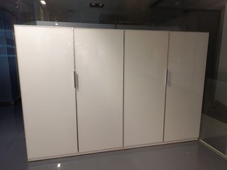 2 armarios de 60 fondo *120 ancho *160 alto, melamina blanca con puertas con tapa de vidrio templado
